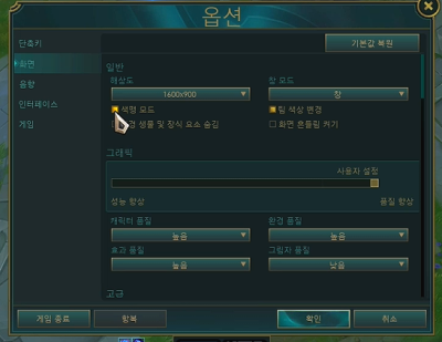 색맹 모드를 켜시면 체력바가 노란색으로 바뀌어서 보기가 훨씬 편합니다!