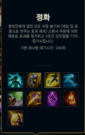 정화: 속박 등 해로운 효과를 제거(공중 및 제압을 불가)