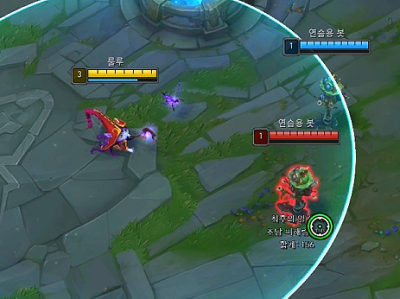 롤을 처음 하시면 챔피언 체력바가 초록색입니다. 그런데 초록색인 경우에는 한타를 했을 때 아군끼리 겹치는 상태가 있을 때는 자신의 체력바가 헷갈리기 때문에