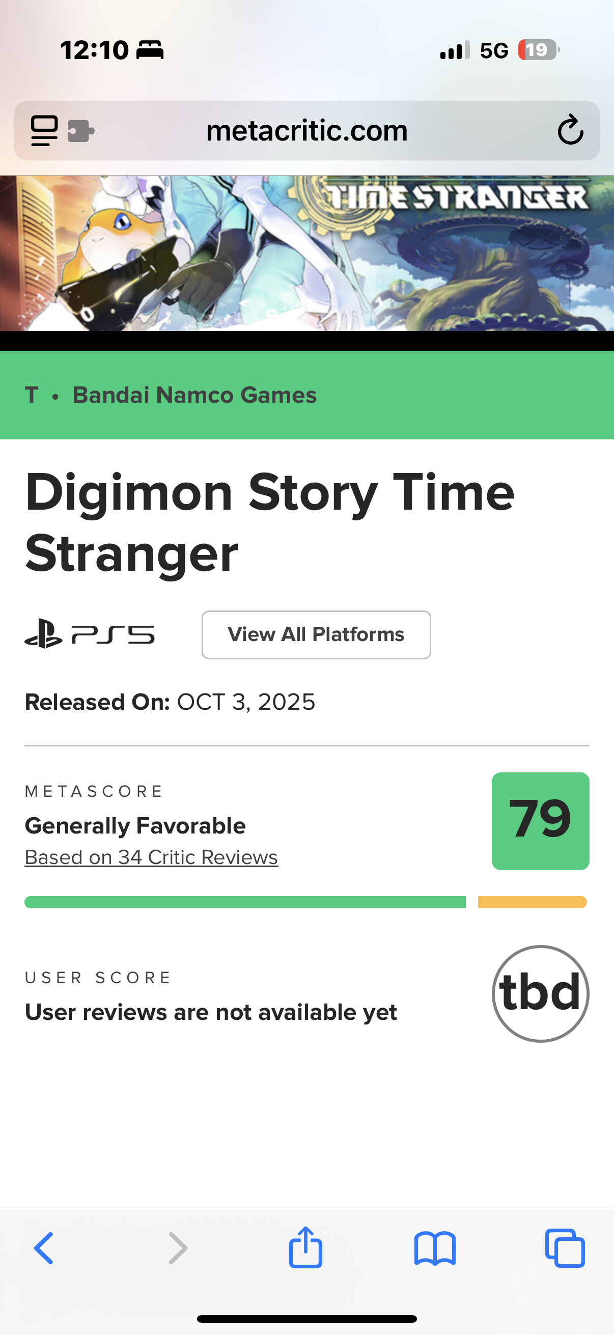 [PS5소프트] 디지몬 스토리 타임 스트레인저 메타크리틱 등재 [7]