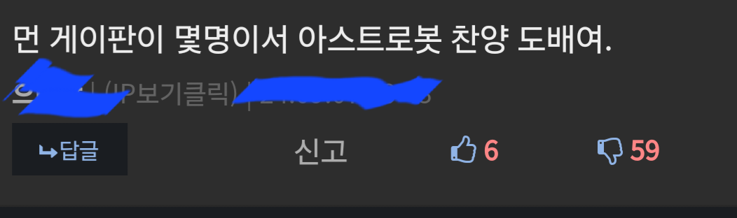 아스트로 봇 고평가 받을 때 발작한 분이 뭐래요. 고티급 게임 나오면 도배되는게 그렇게 배아팠나 봅니다. 누가 누구보고 아프데 | 25.10.05 01:49 | | |