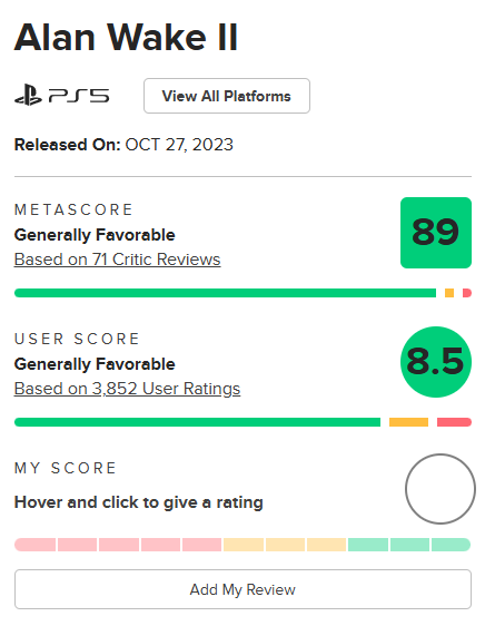 누가 보면 앨런웨이크2 평이 개망한 게임인줄 알겠음. 유저평도 상당히 좋은 평을 받았는데