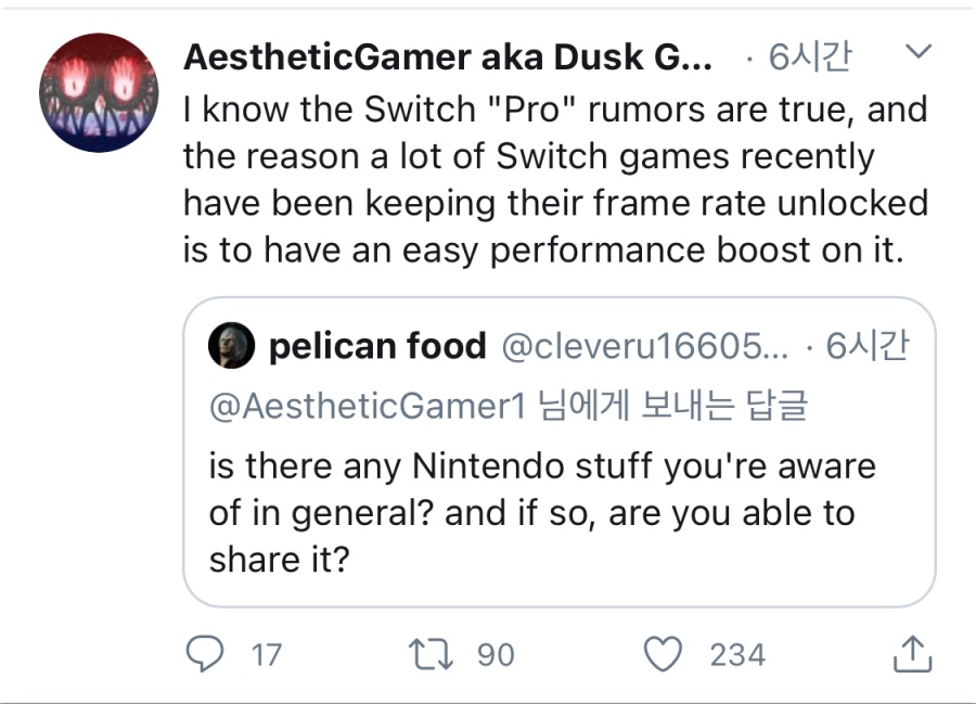 그런사람이 있을수는 있겠죠 근데 레지던트이블 레딧에서 신격화시켜 빨아준다고 신나서 관종짓에 여념이 없는 더스크골렘은 최소한 아니라는거죠 스위치 얘기나와서 말인데 더스크골렘은 스위치 프로는 진짜라며 이유도 뇌피셜로 그럴듯하게 덧붙이다가 하나도 맞는게 없으니까 아가리 싸맨 전적이 있는 인물입니다. 닌텐도에서 얼마나 같잖게 봤겠어요?ㅋㅋ 캡콤에서도 그냥 내버려두는 이유가 대응할 가치조차 없는 인간이라서 그런거구요 | 26.03.22 23:56 | | |