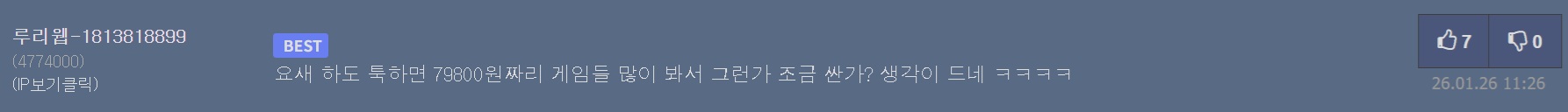 닌텐도 총판인줄 알았는데 다른거도 파나보네요.. 플스 타이틀도 팔던데 | 26.01.29 17:37 | | |