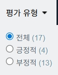 음... 계속 보면서 계산 맞춰 보니까 환불 평가가 전체 긍정적/부정적 비율 계산에 포함 되고 있는 것 같네요. 수고하셨습니다. | 26.03.24 18:20 | | |