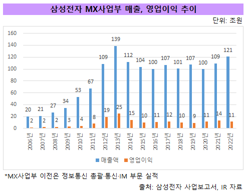 - 2023년 MX 매출 112조4100억, 영업익 13조100억 이익률 11.6% - 2024년 매출 117조 3000억 영업이익 10조 6000억 이익률 9.0% MX 사업부장 취임 이후에 여러 논란도 많았지만 제조업 기반이 영업이익률 10% 안팎으로 내면서 임기 내 플래그쉽 판매량도 끌어올려서 승진 못 할 이유도 없긴함...