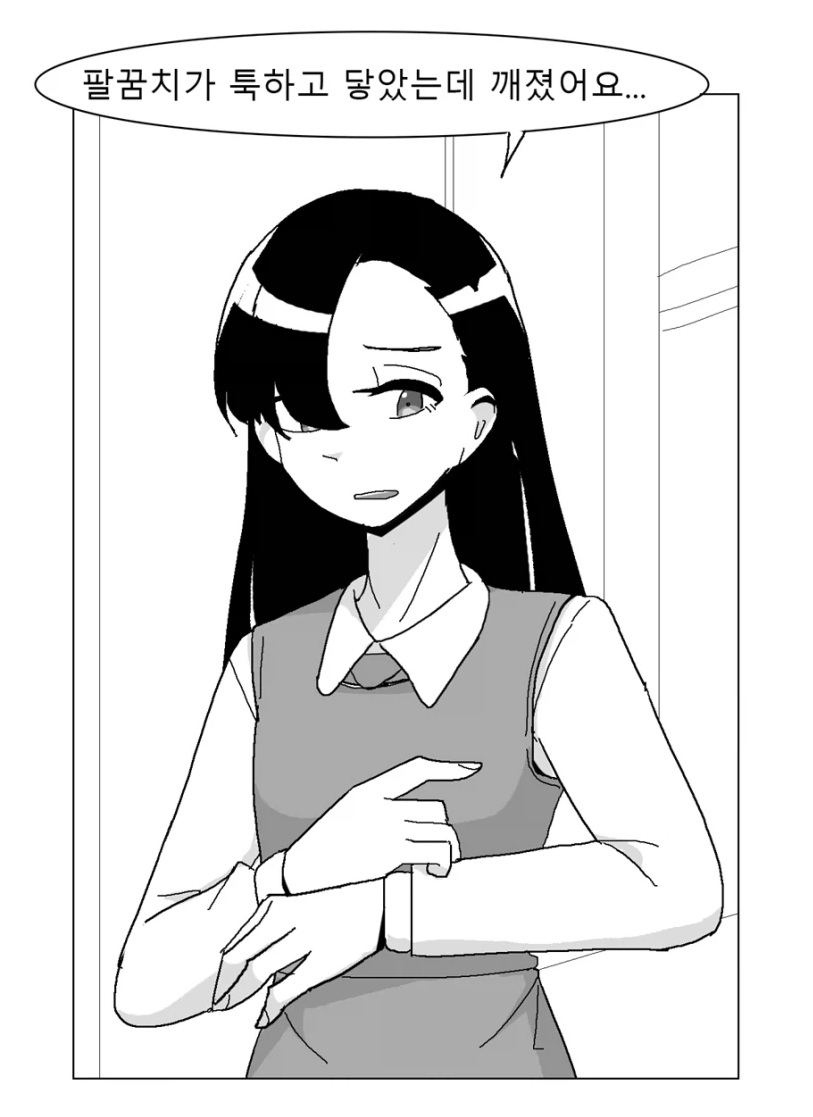 팔꿈치가 툭 하고 닿았는데 주무세요