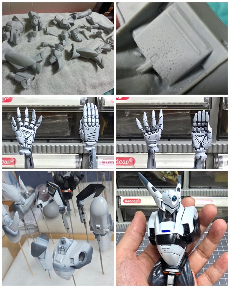 예를 들어 종아리와 발목 사이 빈 공간들이 그냥 메꿔져 있어 검은색으로 도색 해 커버 했습니다