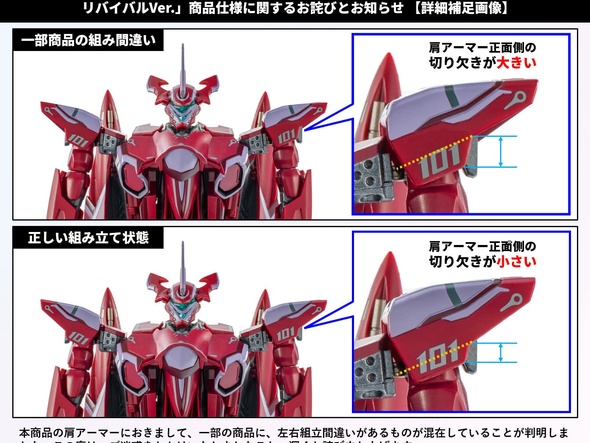 DX초합금 VF-27 루시퍼 리바이벌 어깨가 잘못 조립된 경우가