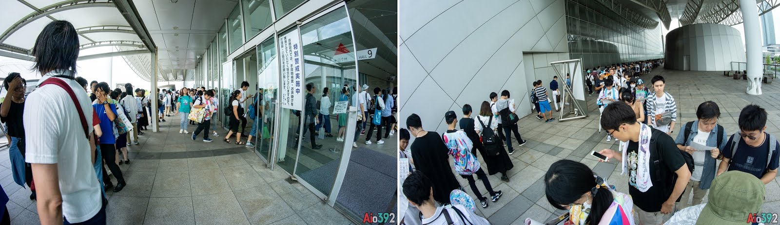 오사카에서는 오픈전까지 실외의 기온 35도, 체감 온도 39도에 육박하는 살인적 날씨에 참가자 전원 극심한 고통을 받았었는데 마쿠하리 멧세는 실내의 에어컨 바람 아래에서 대기할 수 있어 너무 좋았습니다.
