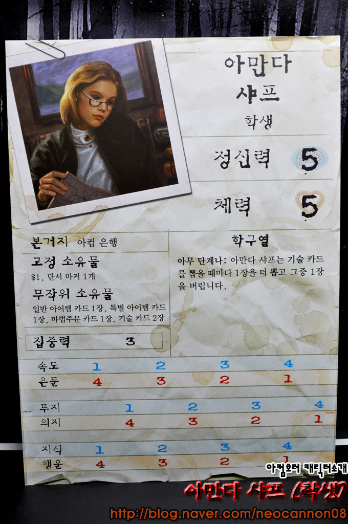 미스캐토닉 대학에서 연구원으로 근무하기 위하여 아컴에 찾아온 맨디톰슨은 초자연적인 현상과 고문서를 연구해왔습니다.