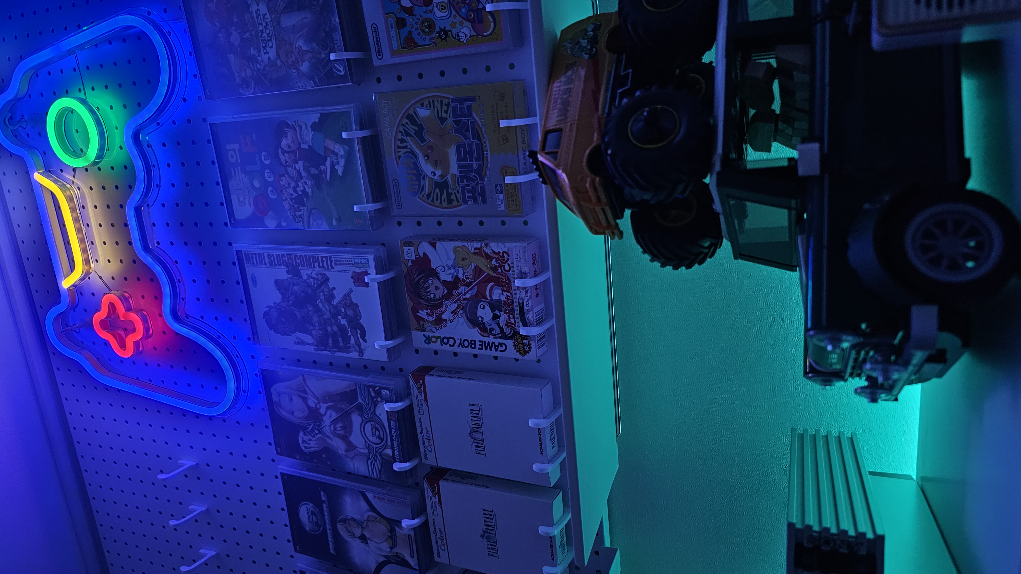 왼편 타공판에는 게임 소프트웨어가 걸려있고