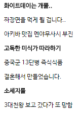 짜파게티는 실시간으로 봤었는데 정말 장관이었음 ㅋㅋ 새로고침 누르면 댓글이 순식간에 ㅡ.ㅡㅋ | 17.03.22 09:15 | |