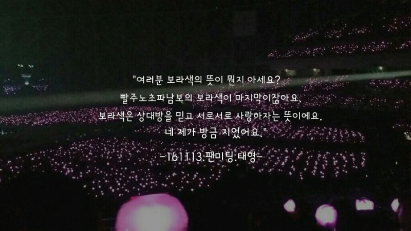 원래 뷔(태형)가 약간 4차원에 감성파임...ㅎㅎㅎ 근데 저 말로 팀 컬러와 구호가 보라색과 "보라해"로 확실하게 정해짐. | 21.05.29 06:44 | |