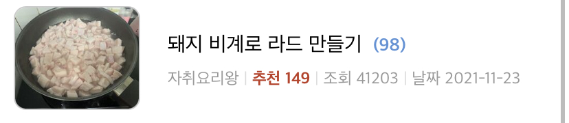 주변에 정육점은 많은데 비계 취급하는 데가 없더라고요 | 21.11.25 22:19 | |