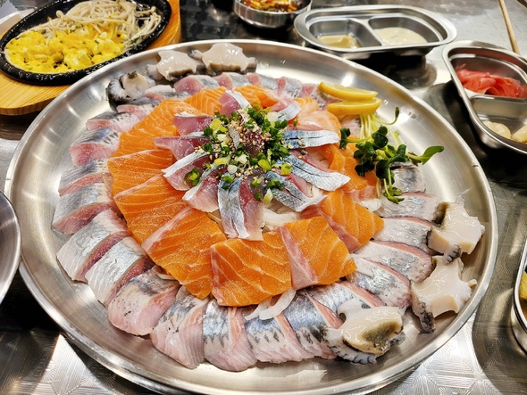 이전에... 나름 첫댓글로 흥했었죠... 같은 가게에 또 갔습니다. 이번에도 이전과 같은 5만원 모듬회를 주문했습니다.