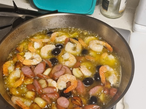 발효 어디선가 실패한것같지만 내상은 어느정도 모양은나왔으니. 이제 이 실패작을 활용할 잡탕 감바스,로 냉동고의 새우를 처리하기로