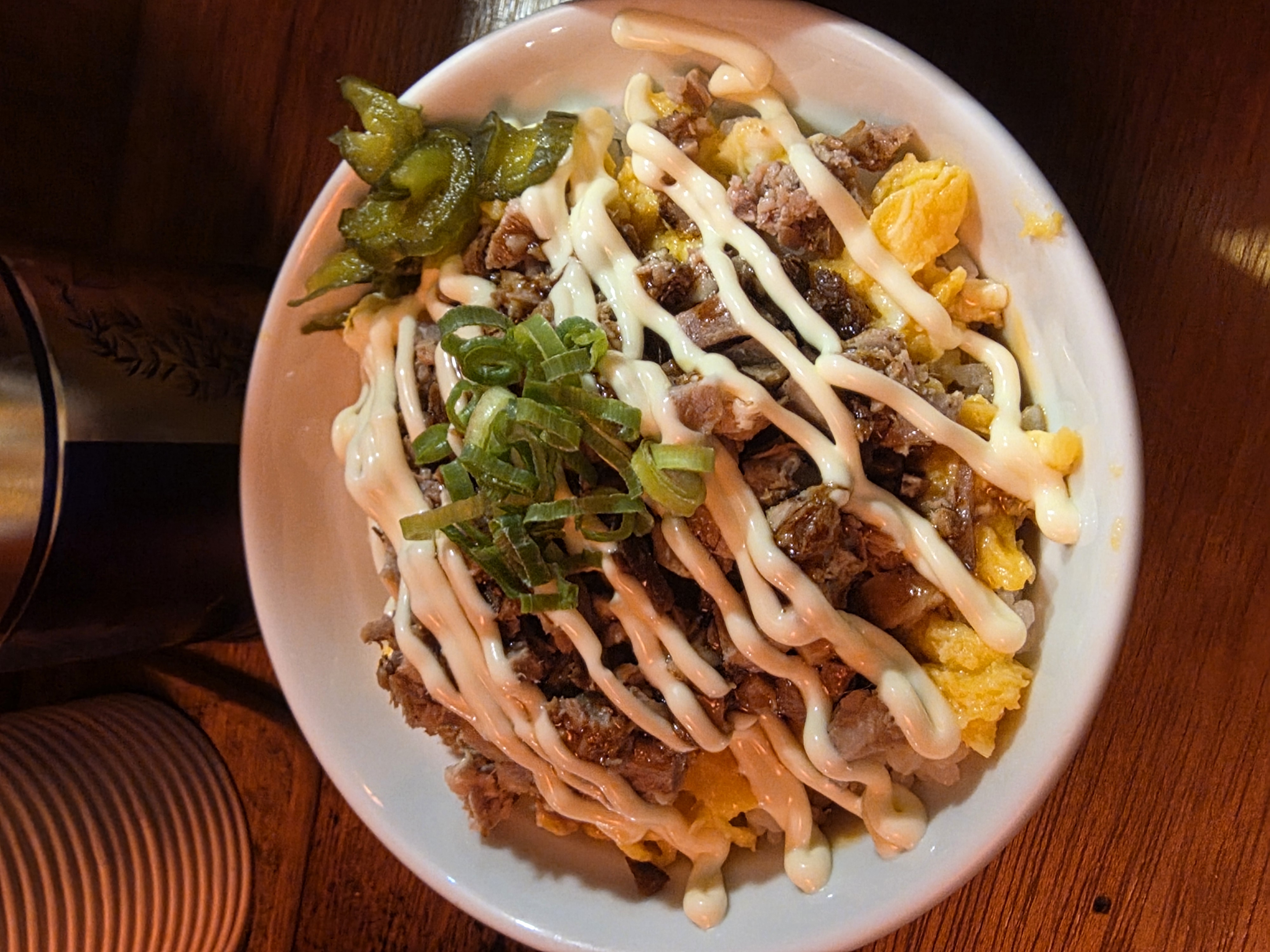 제가 주문한 차슈 라멘 곱배기 + 달걀 + 김 추가 토핑이고 차슈 덮밥입니다.