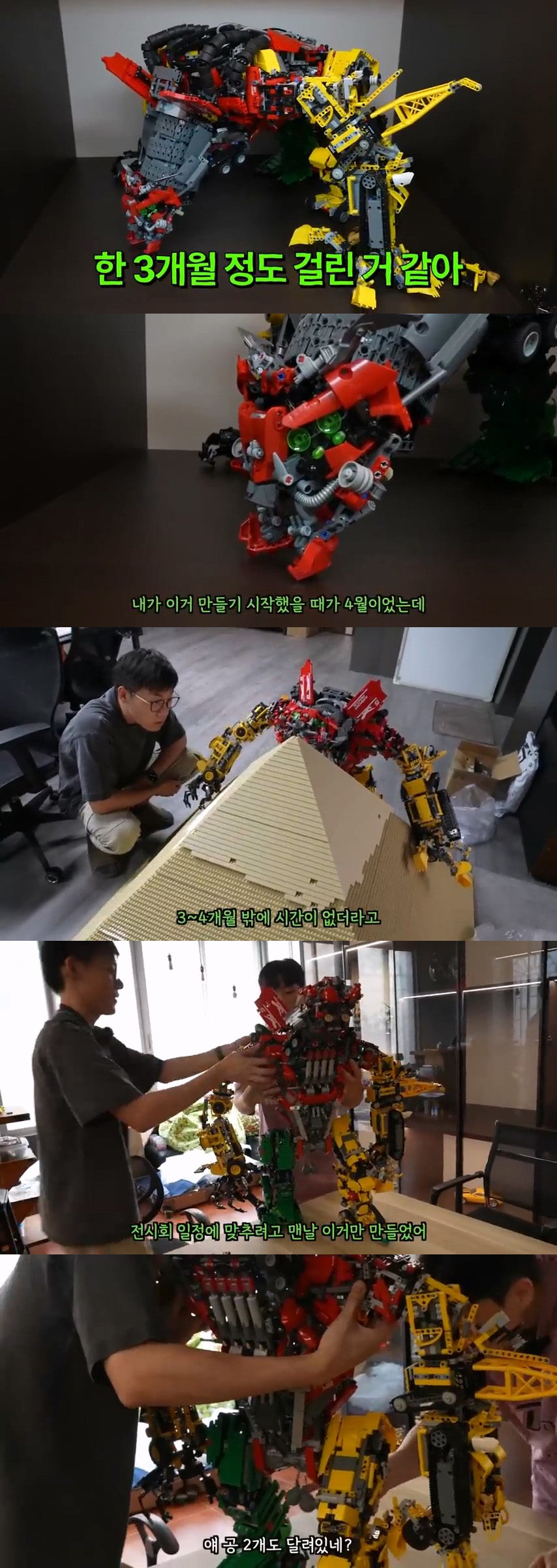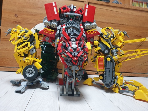 공사용 중장비들이 변신해 합체한 모습인데요. 제작할때도 최대한 공사장 중장비 차량들을 참고하면서 제작하였습니다.