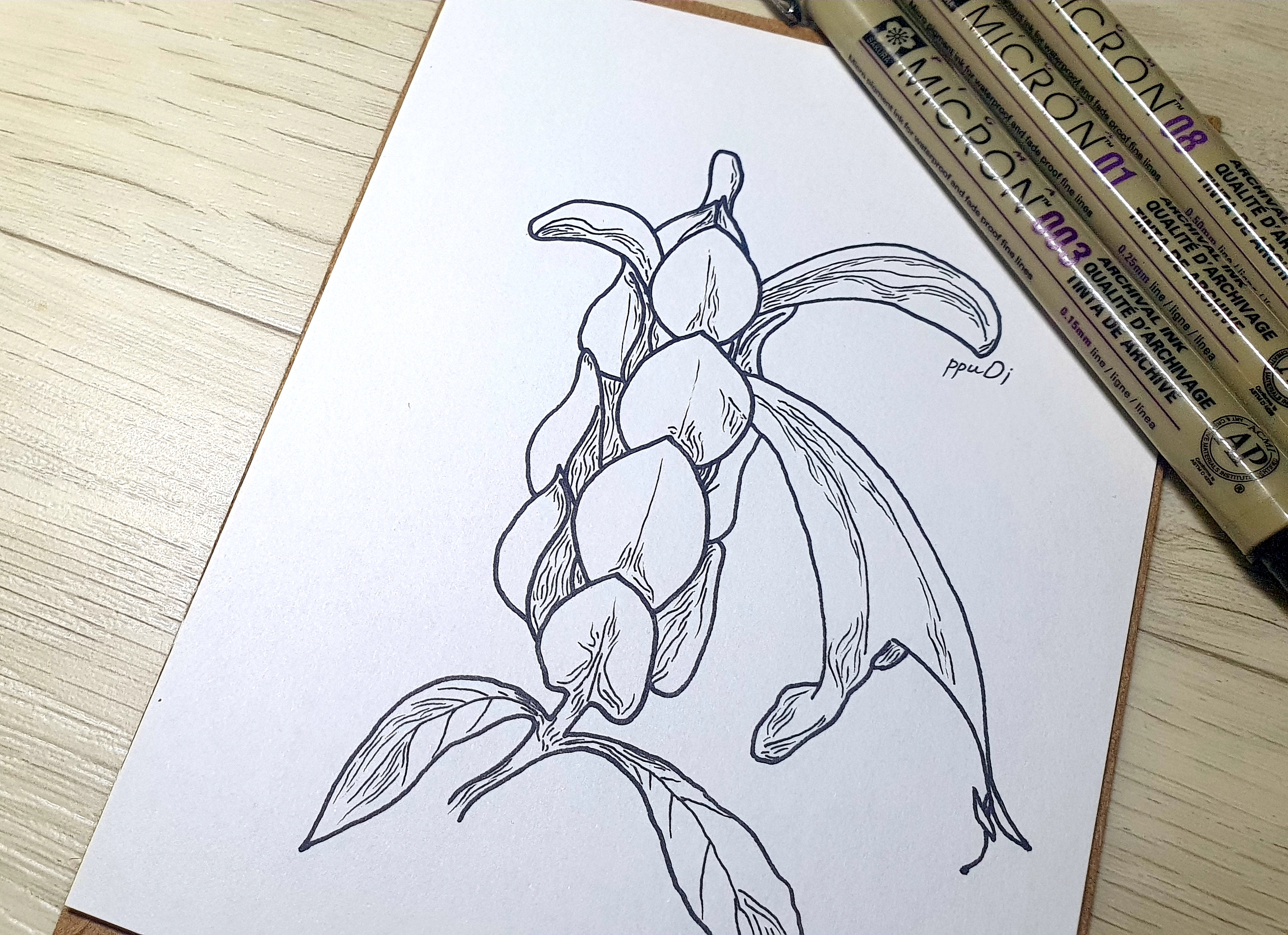 더 얇은 펜으로 어두운 속부분이나, 겹치고 가려져서 그림자가 지는 부분, 색이 짙은 부분 등을 표현해주면 끝!