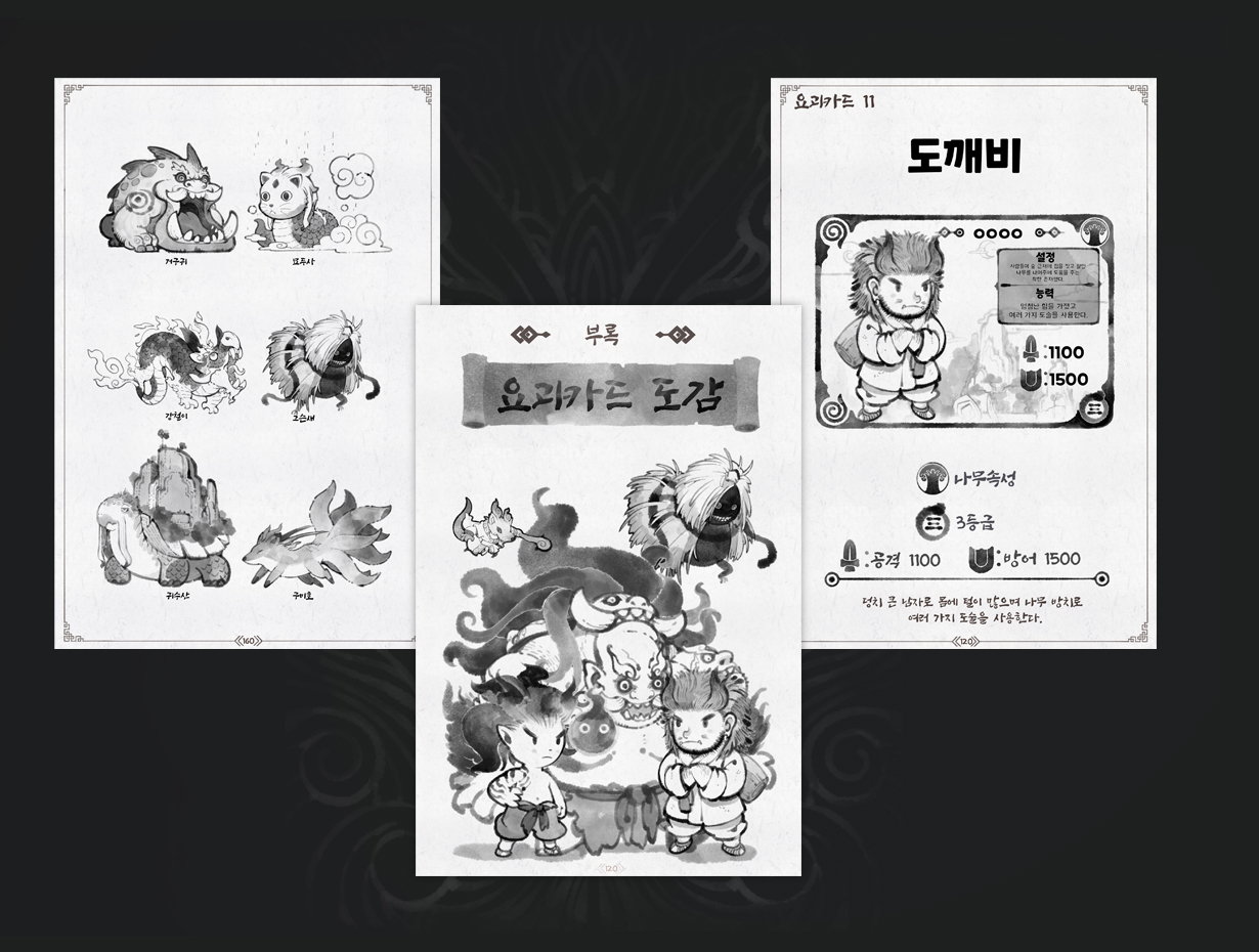 한국의 요괴는 한국에 전해져 내려오는 요괴들을 디테일한 스케치와 수묵화 기법을 같이 표현하여 그려낸 도감책입니다.