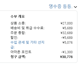 배송비가 비싸기 때문에 이전 아마존 할인가인 35100엔이랑 큰 차이가 없는 수준입니다만, 이젠 아마존 판매분은 9900엔 쿠폰이 없기 때문에 구매한다면 지금이 마지막이지 않을까 싶어요.