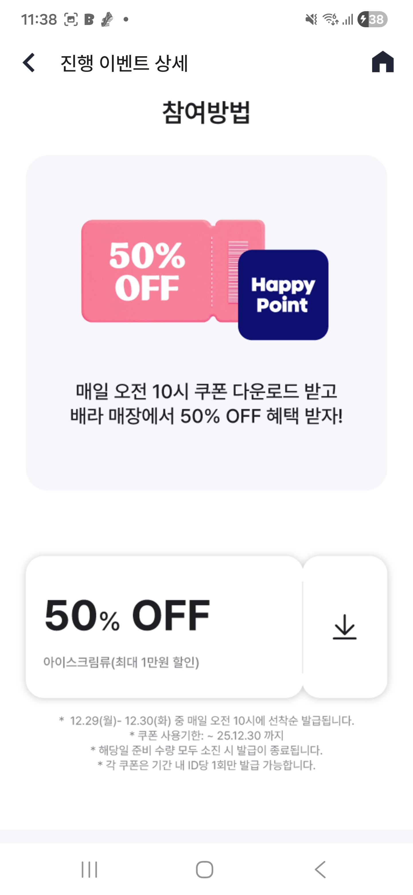 해피포인트 베라 50퍼 할인 아직 여유 있는거 같아요 저도 방금 받았습니다.