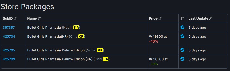 아 스팀디비 보니 한국 전용 키가 따로 분리 되어있군요. Bullet Girls Phantasia(KR) (Only KR)