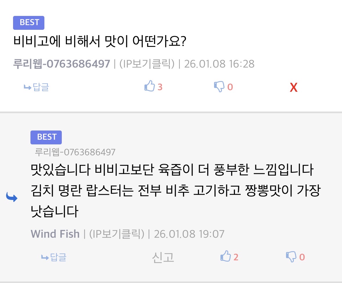무조건 맛있다고 해야지만 추천받고 개인의견 남기면 비추받는군요? | 26.01.14 12:28 | | |