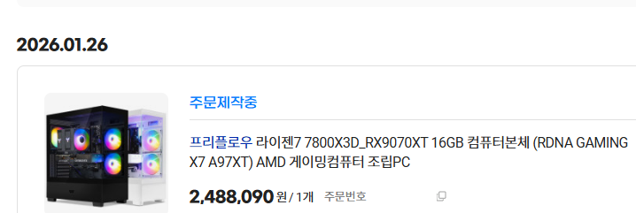 저도 중옵 계속 쓰다가 요번에 큰맘 먹고 루리웹에 추천 올려와서 7800X3D+RTX5080 16G+32G+1TB 2,649,110원에 7월달 22개월 할부로 구매를 했는데 그때는 비싸다고 생각하면서 샀는데 지금 11번가 할인가 해서 가격 4,696,560원 그때 구매가 신의 한수가 될줄 몰랐네요 | 26.01.27 12:55 | | |