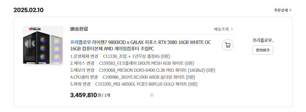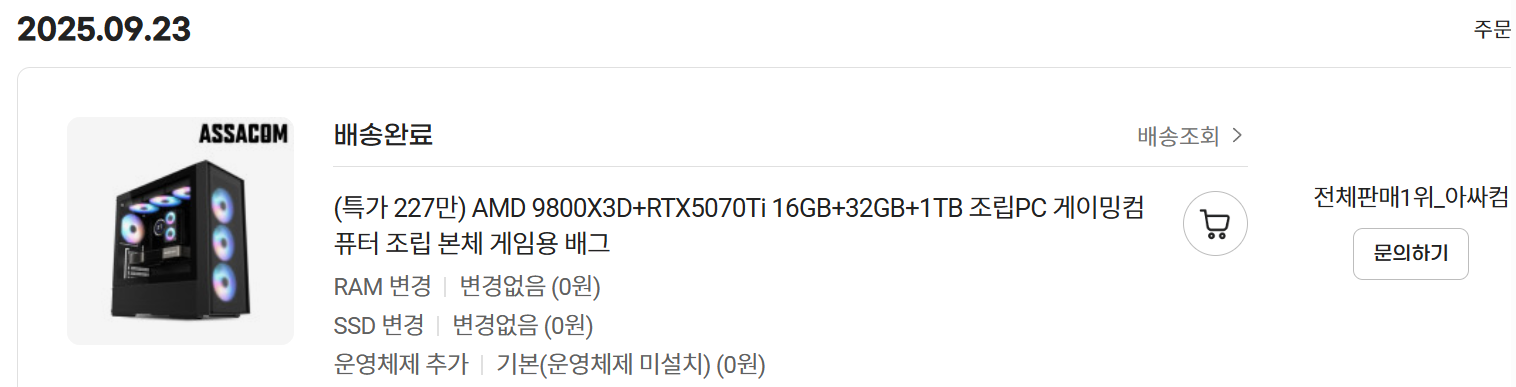 지마켓에서 9800X3D+B850M WIFI+RTX 5070 ti 게이밍 컴퓨터 완본체를