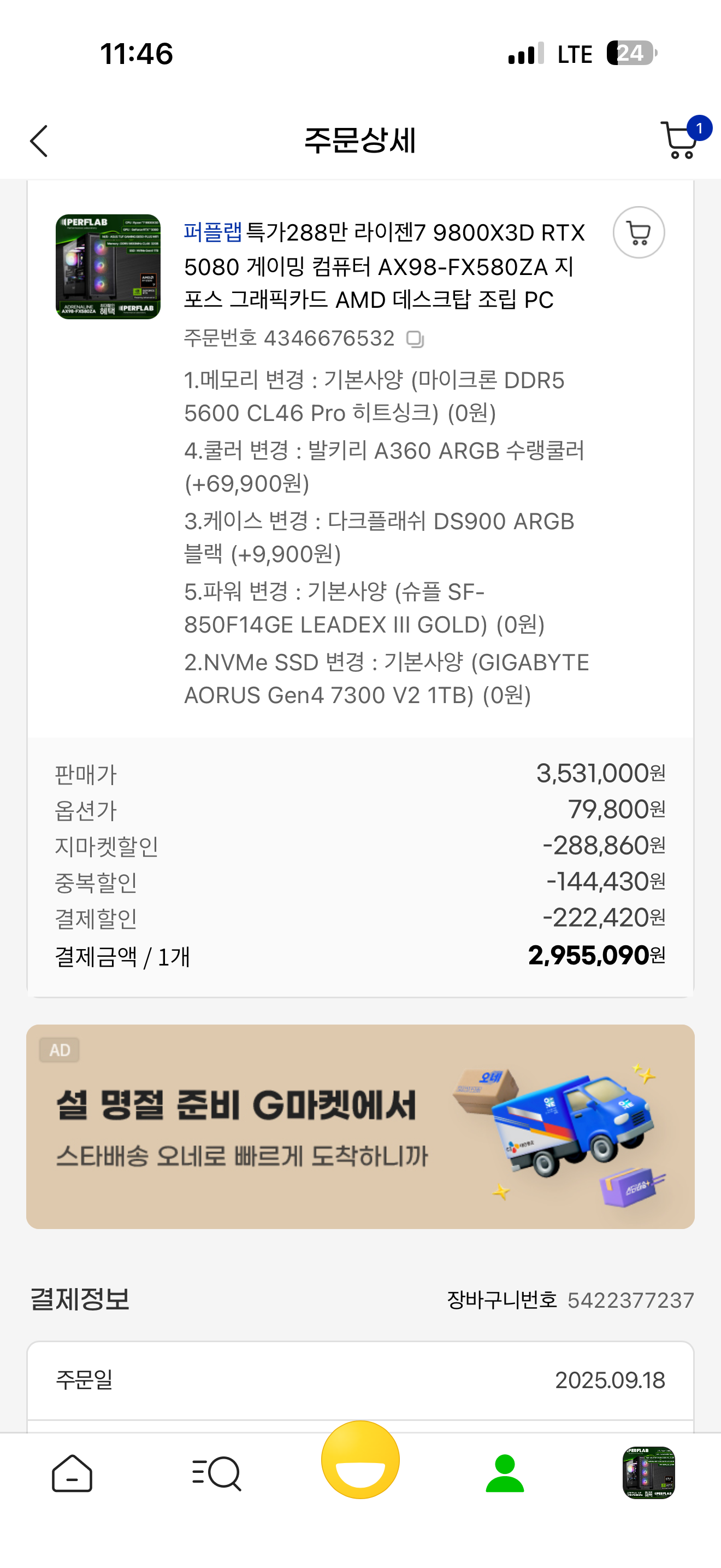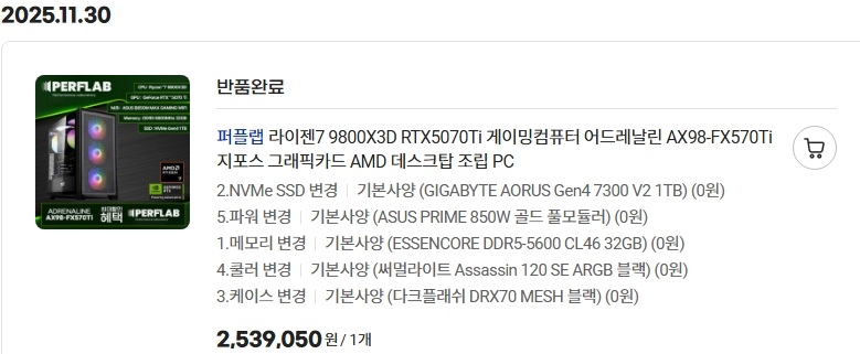 구매내역 들어가서 확인해보니 같은제품군인데 파워랑 쿨러가 본문에 올라온거로 바뀌었네요 | 26.01.27 16:23 | | |