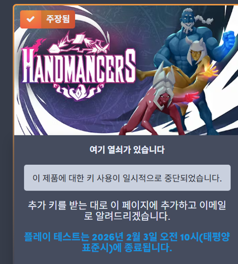 네 플레이 테스트 말그대로 기간 한정 체험판입니다. | 26.01.29 16:33 | | |