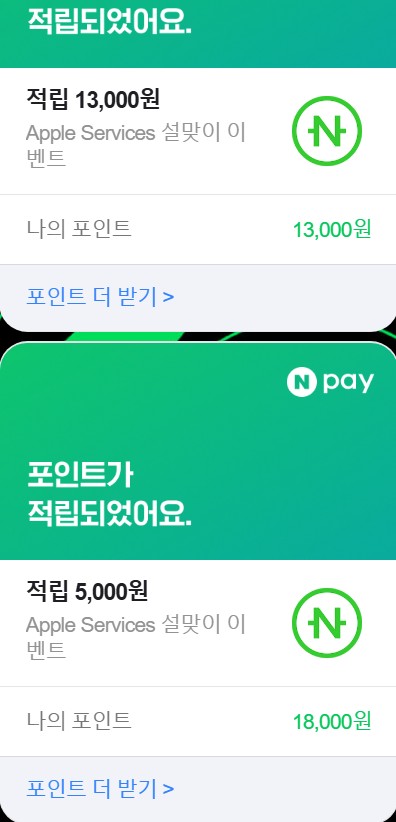 애플 처리방식이 좀 이상해서,달라서 그래요 윗댓처럼 연속으로 하면 개별건으로 처리되지않고 합산으로 처리되요 예를들어 처음 4400결제하고 10000 결제 3번 연속하면 4400 영수증 1개하고 3만 영수증 1개 이렇게 나와요 이 뒤에꺼가 네이버로 와야 포인트 적립됩니다 그래서 비슷한 콘텐츠페이 애플 앱스토어 이벤트 주의사항에 결제시간과 실제 kt에 결제찍히는 시간이 다를수있다, 이렇게 누락됏으면 문의해달라 써잇습니다 | 26.02.02 00:27 | | |