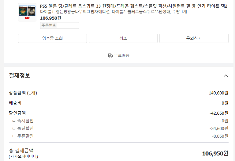 예를 들어 이미지에 있는 엘든링 통합판과 33원정대 셀렉하고 쿠폰 적용, 카카오페이 결제하면 저기 최대혜택가라 보이는 99463원이 뜹니다.