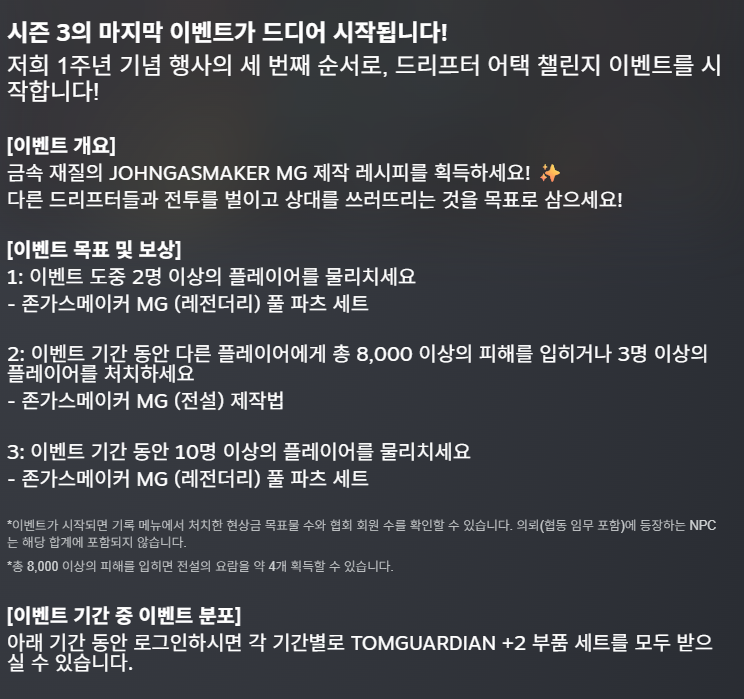 주년이벤이 PVP 장려 미션이라 유저풀을 늘리고 싶은듯