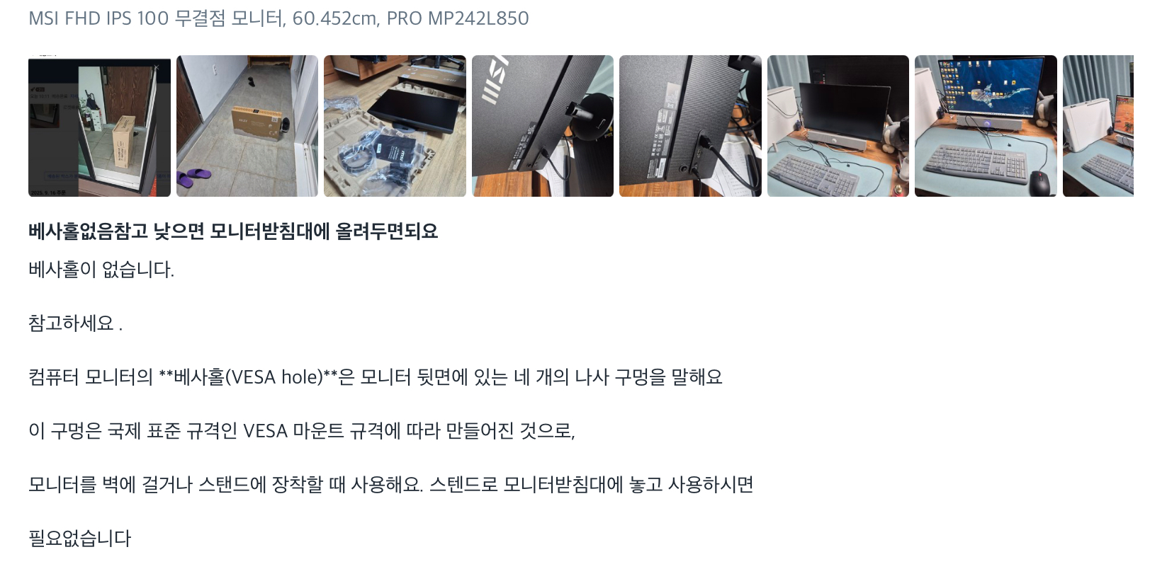 이 모니터 상품평을 보니 베사홀이 없나봅니다. 참고하새요~