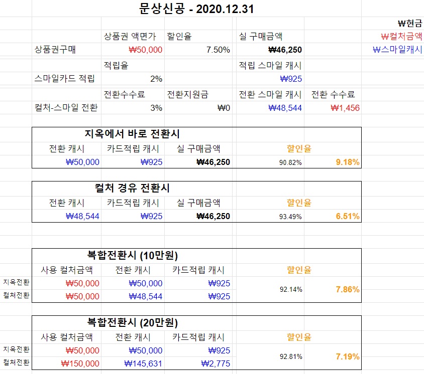 수수료 없이 전환되는게 월 최대 5만원 이후부터는 컬쳐랜드 사이트를 통해서 수수료 3% 주고 전환해야해요 | 20.12.31 19:26 | | |