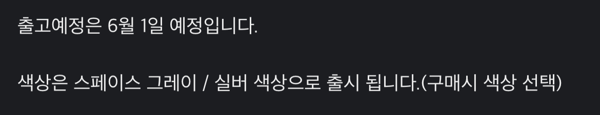 색상은 스페이스 그레이 / 실버 색상으로 출시 됩니다.(구매시 색상 선택)