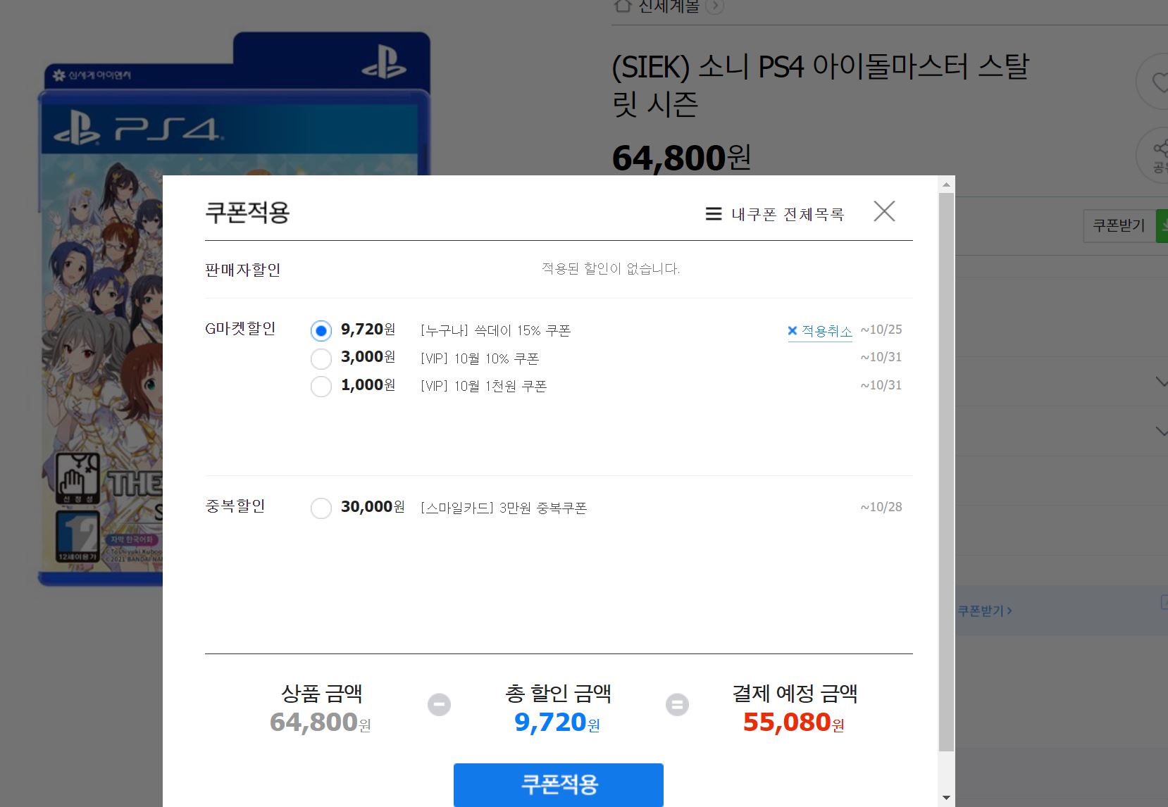 http://item.gmarket.co.kr/Item?goodsCode=2242656219 http://itempage3.auction.co.kr/DetailView.aspx?itemno=C434056378 PS4 아이돌 마스터 스탈릿 시즌 (쿠폰 적용시 55,080원)