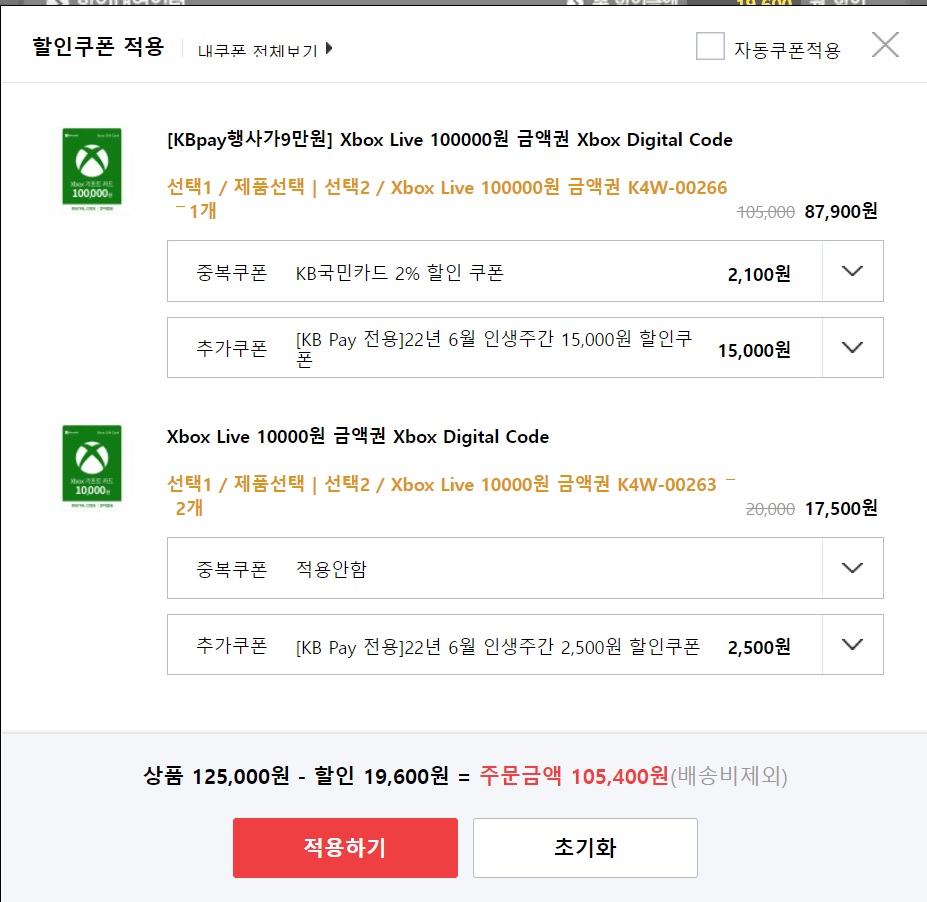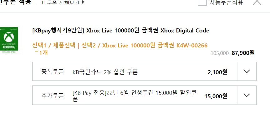 정상 적용됐습니다. 금액권도 쿠폰이 적용안되는 금액권 플스 기프트카드 같은건 상품권 분류라 혜택적용 안되는데 엑박 기프트카드는 쿠폰적용되는 금액권이라 적립혜택 적용됩니다. | 22.06.13 21:06 | | |