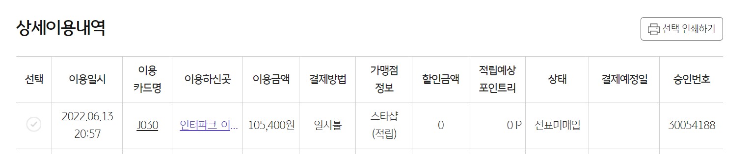 넵 괜찮아요... 카드이용내역에서 스타샵으로만 뜨면되요.. | 22.06.14 00:15 | | |