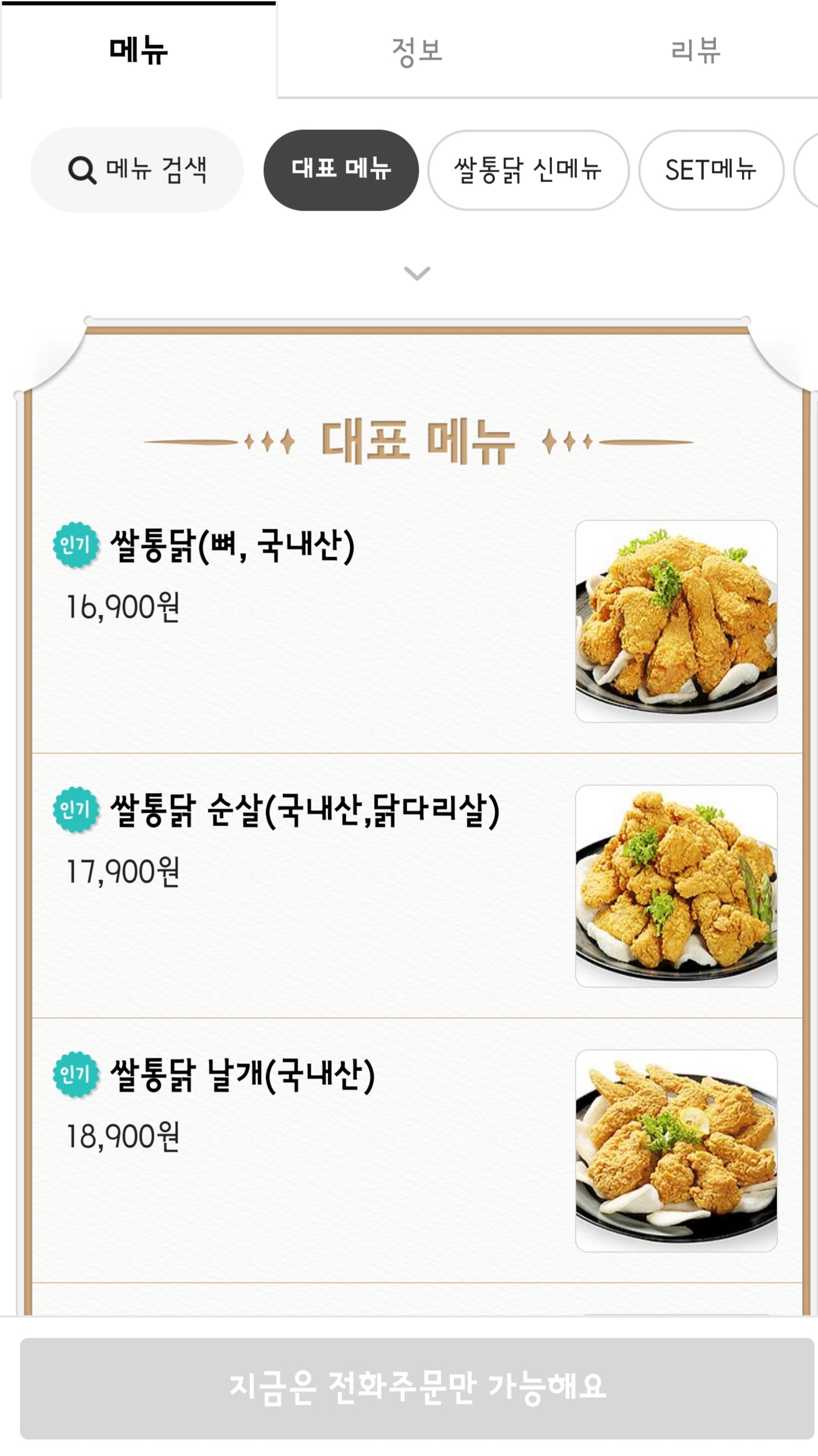 쌀통닭 메뉴좀 추천해주세요 | 22.09.26 11:30 | | |