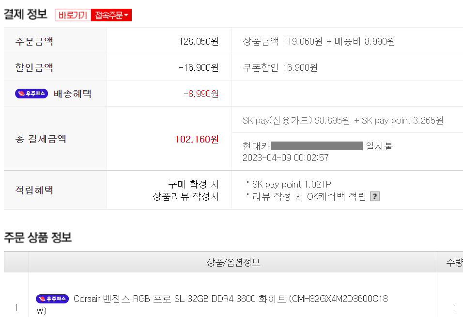 저도 처음에 2x16 표기가 없어서 확인해 봤는데 재고 관리 코드 CMH32GX4M2D3600C18W를 구글에 넣으니까 미마존에서는 정확히 2x16로 뜨고 결정적으로 커세어 공홈에서도 2x16으로 나오더라고요 이 제품 자체가 32gb는 없는 거 같고 64gb 세트는 4x16 구성만 있네요 그리고 11마존 제품 페이지에 가보면 동영상 구매 후기가 꽤 있는데 2x16이 맞더군요 32gb 싱글이 있는지는 모르겠지만 혹시라도 그렇게 오면 11마존에 책임이 있으니 환불받아야죠 | 23.04.09 17:57 | | |