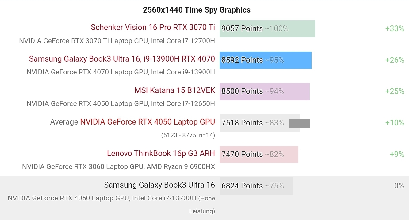 논옵 불가능한 노트북이라 벤치보다 실제 게임에서 좀 떨어질 거 감안하면 4070 Laptop 모델은 데탑 2060~2060S, 4050 Laptop 모델은 데탑 1660Ti 정도로 생각하시면 됩니다. 화면해상도가 1800P로 상당히 높아서 픽셀매칭 상태 풀옵은 프레임이 살짝 아쉬울 순 있겠는데 못 즐길 수준은 아닐 거 같습니다.