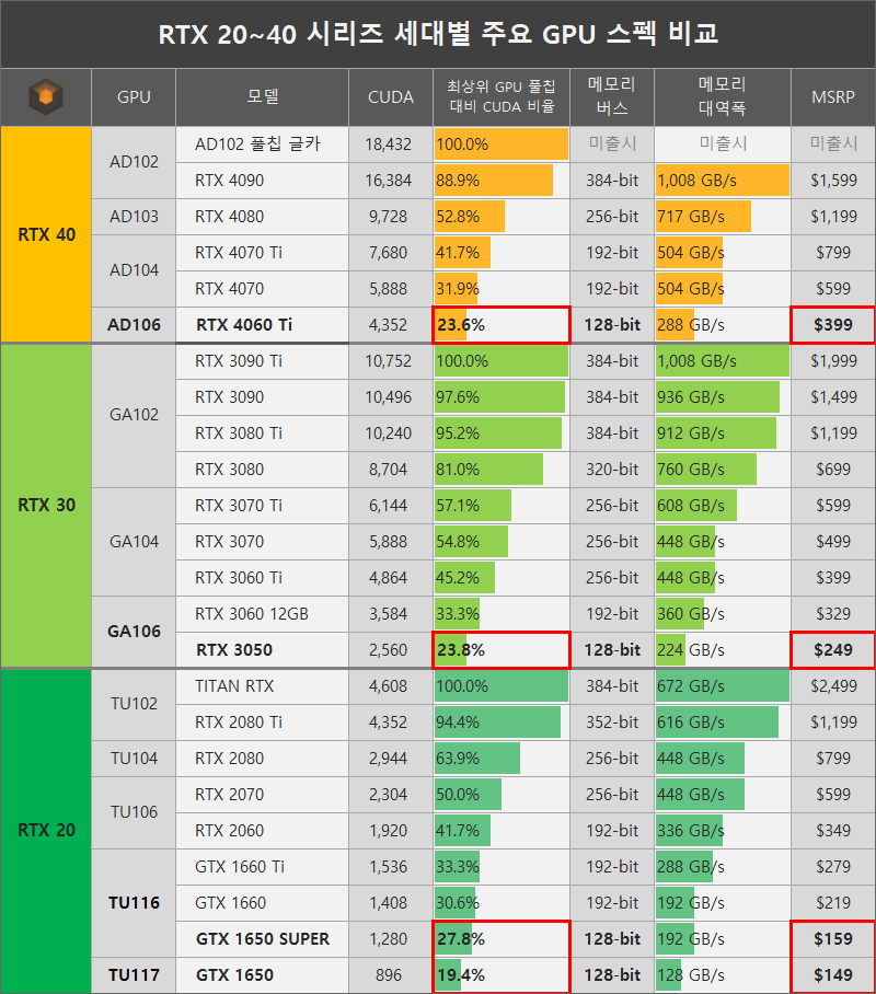 쿠다 비율로 따지면 50급이고 네이밍 올려치기 한단계씩 했다고 생각하면 50Ti급 정도 되겠네요. | 23.08.10 14:08 | | |