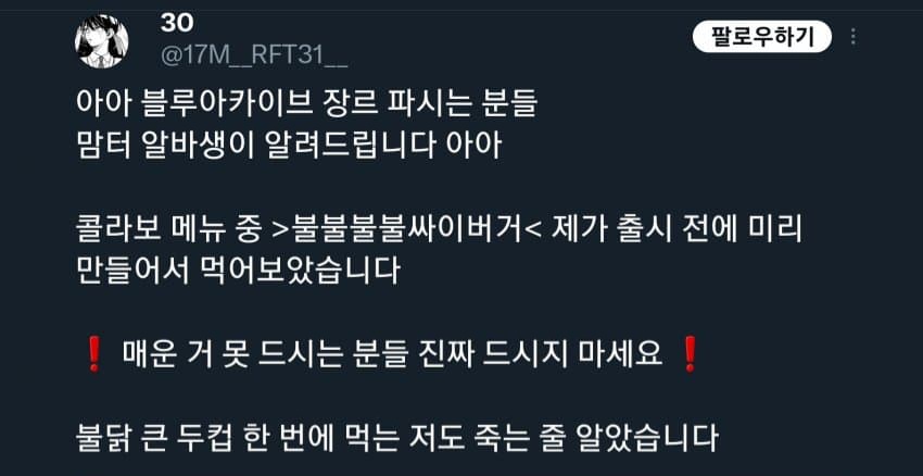 스코빌지수상으로는 불닭볶음면보다 좀더 매워요. | 23.11.09 18:28 | | |