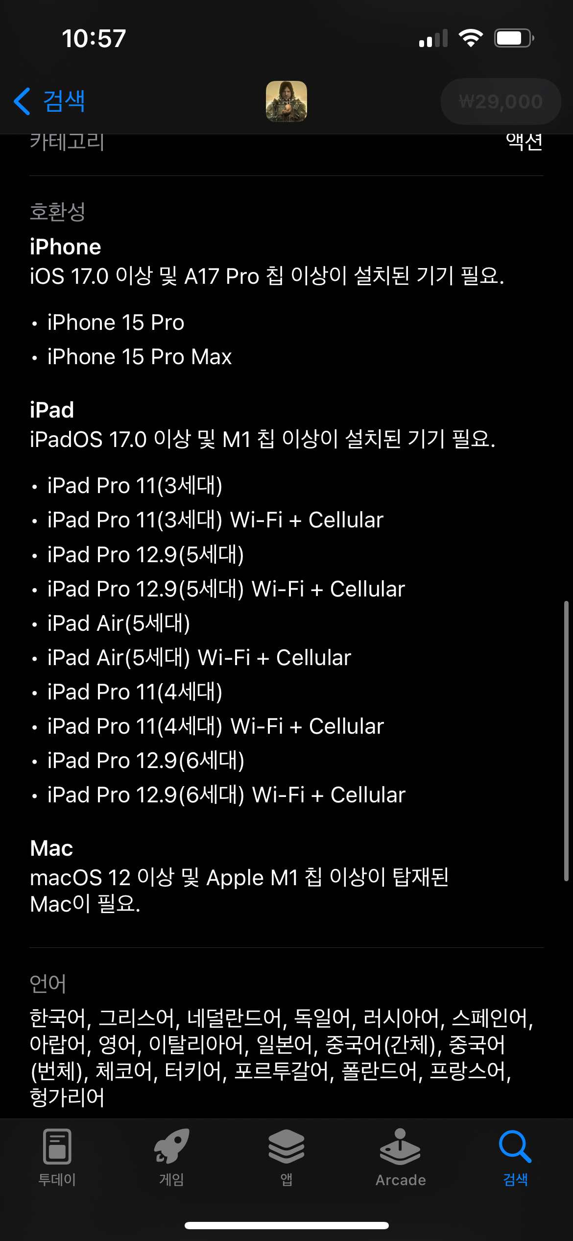 아이폰 앱스토어 정보에는 한글 나와요 용량은 1.79G입니다