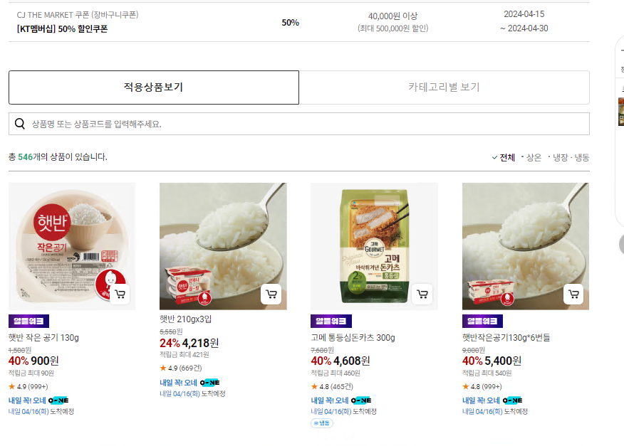 CJ 더마켓은 말이 50%지, 실제로는 5~10%임. 상시 40%~45%인데, 저 쿠폰 대상상품은 "정가"기준임.