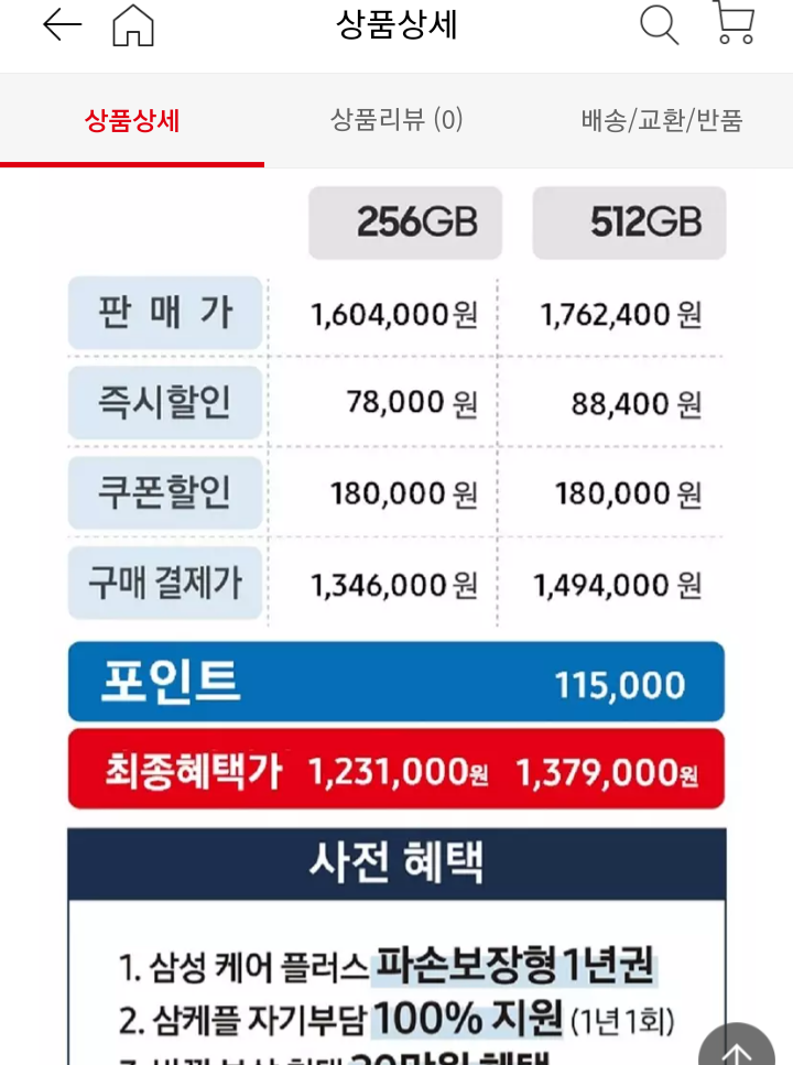 - 함께구매 할인 (자급제+버즈FE 패키지 함께구매 할인)